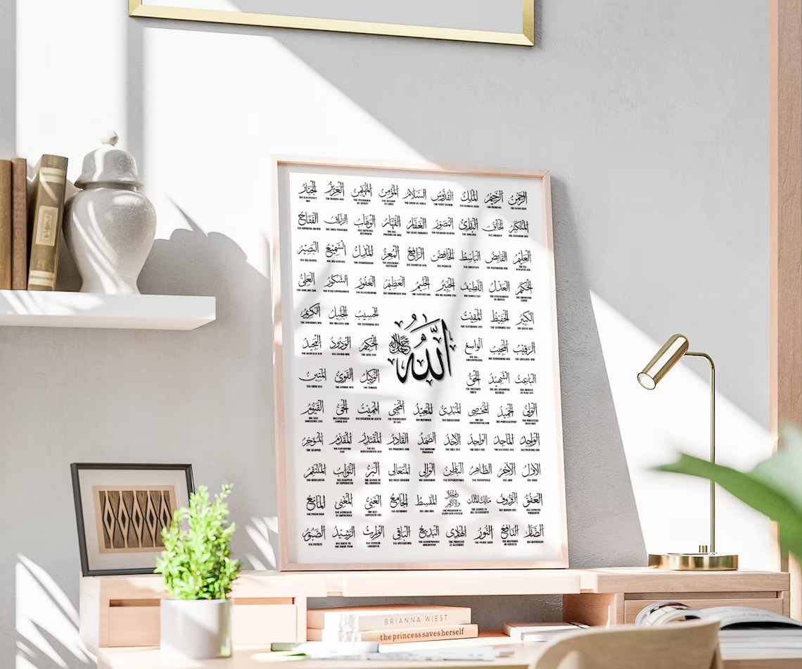 Bring home the 99 Names of Allah Divine Ornate Frame today and let your walls speak the language of devotion and beauty.