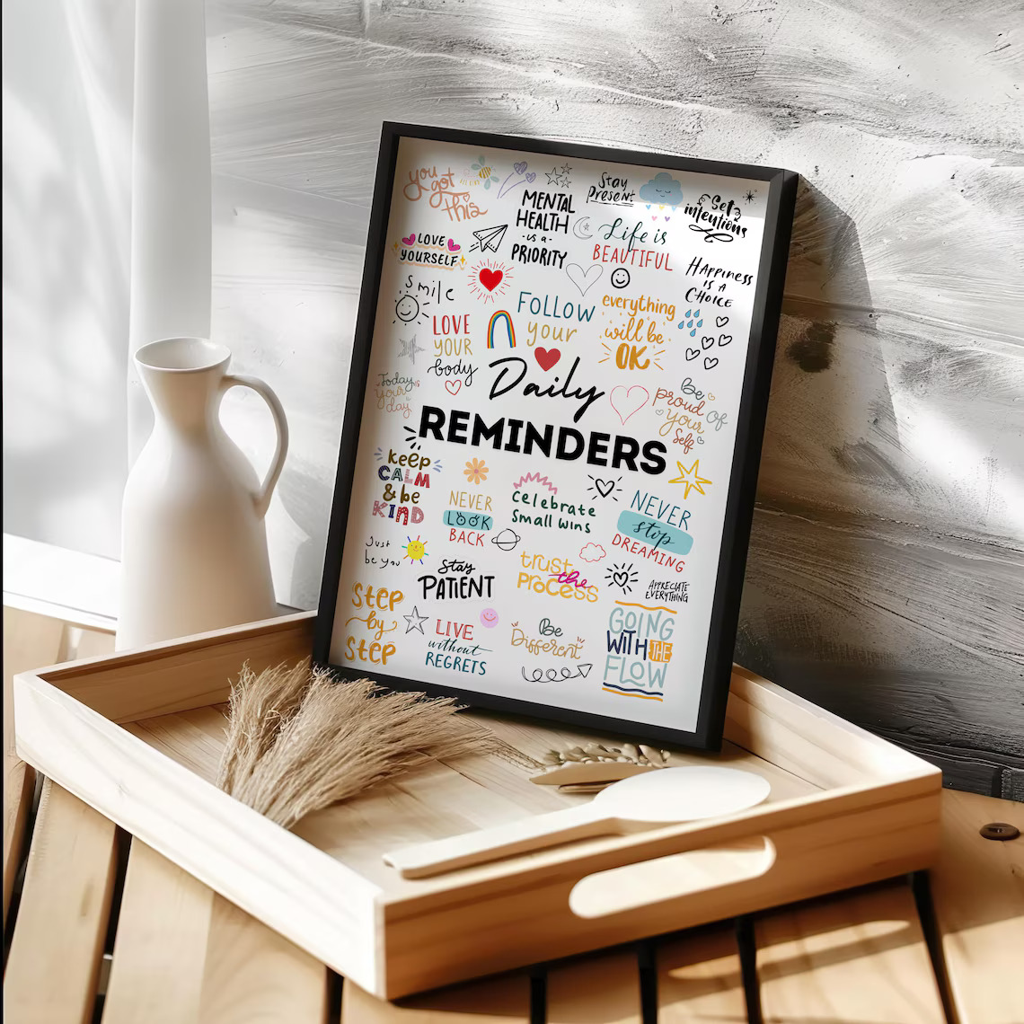The Gift of Positivity Searching for a gift that truly matters? The "Daily Reminders" frame is perfect for anyone prioritizing their mental health, starting a new chapter, or simply needing a little extra light in their home. It is a gift that says, "I care about your well-being," and provides a lasting source of encouragement.