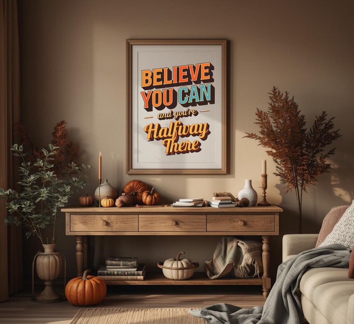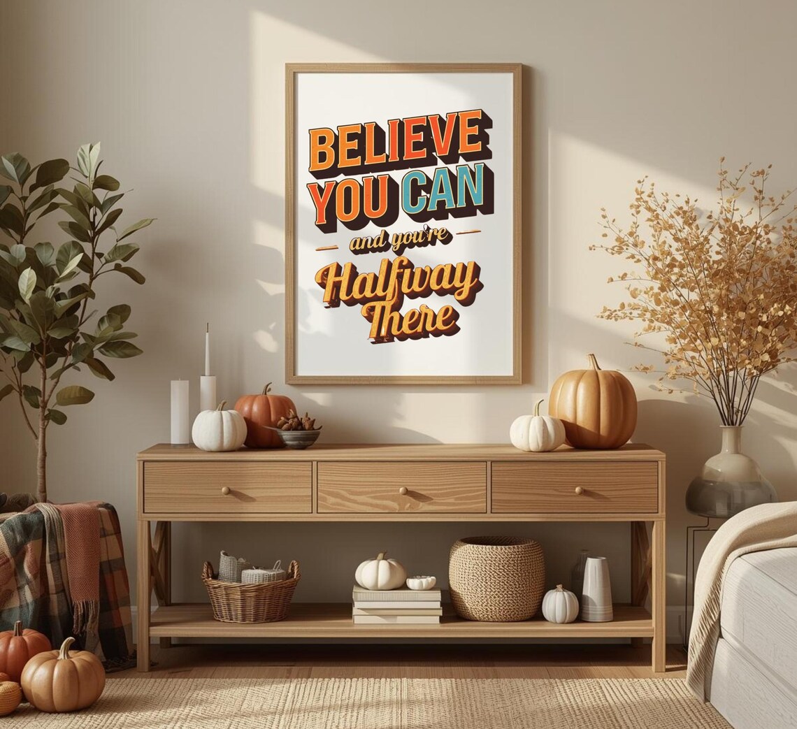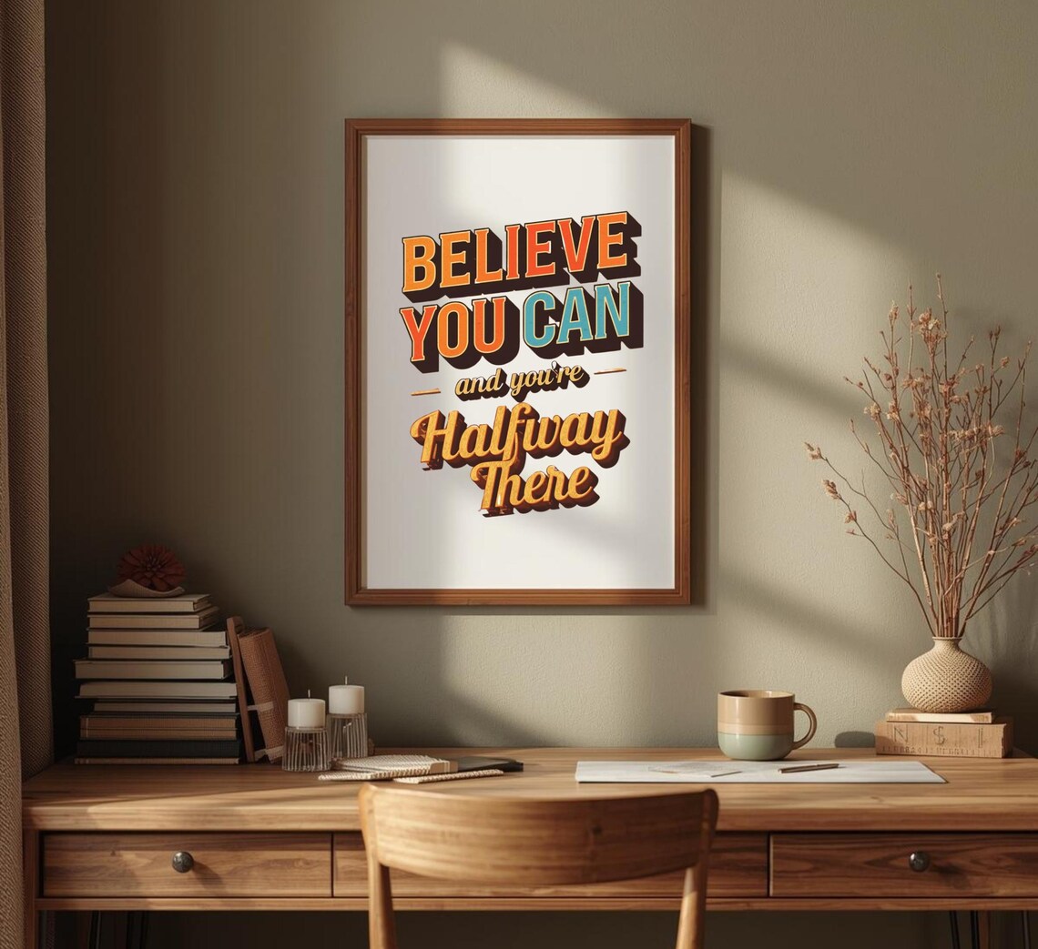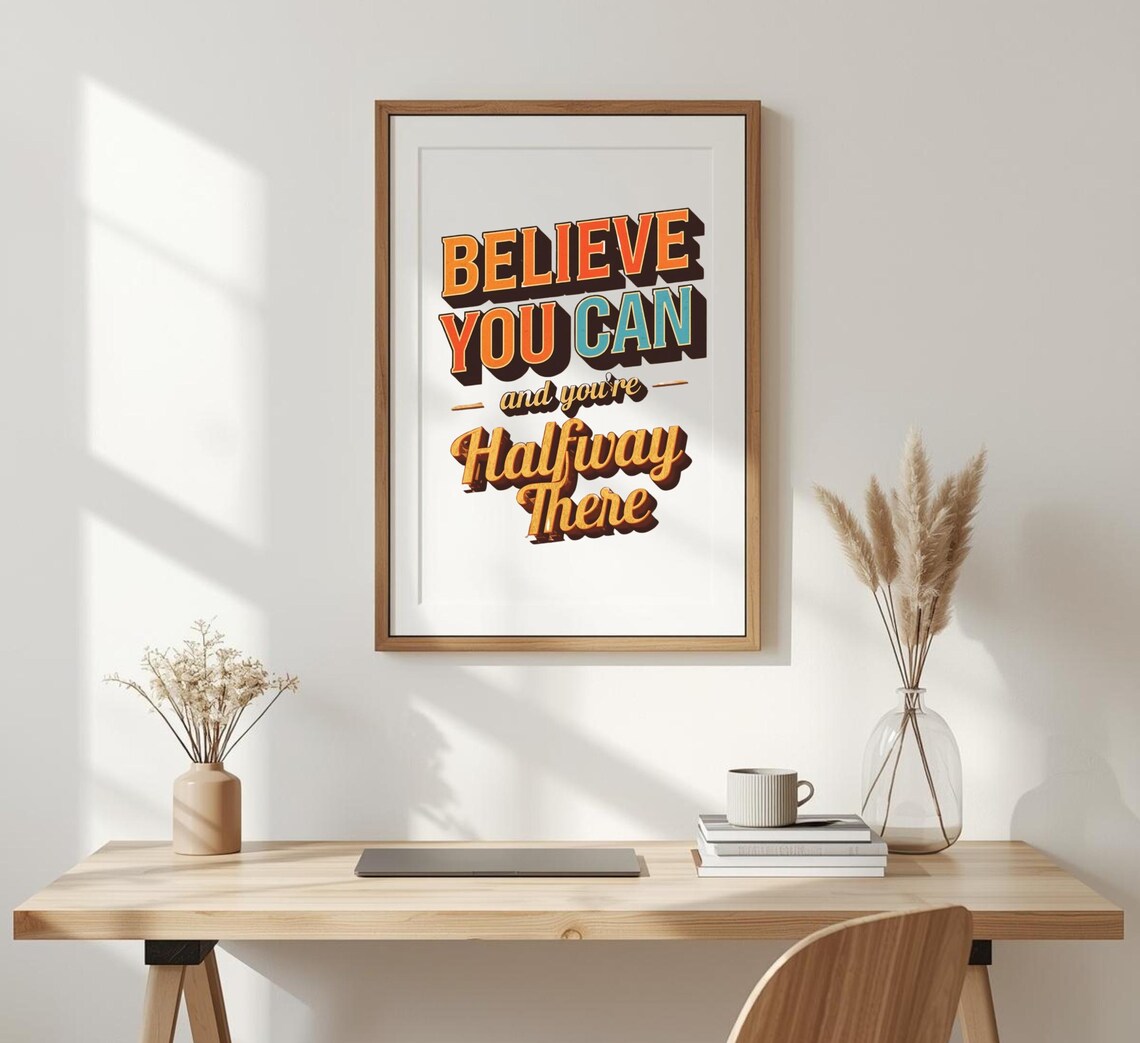 Infuse your daily environment with optimism and drive using our "Believe You Can" Retro Framed Poster. This piece brings to life one of the most iconic pieces of wisdom attributed to Theodore Roosevelt: "Believe you can and you’re halfway there." It serves as a psychological anchor, reminding you that the most significant hurdle to any achievement isn't the external work, but the internal conviction that success is possible.