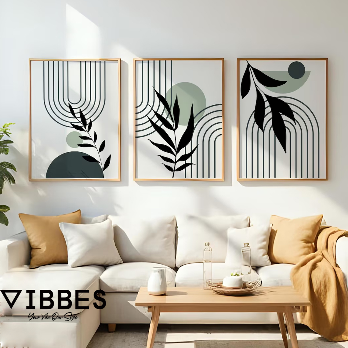 VIBBES premium wall art collections are curated to deliver luxury design, modern aesthetics, and superior quality for contemporary homes and commercial spaces.• Premium modern abstract botanical wall art set of 3