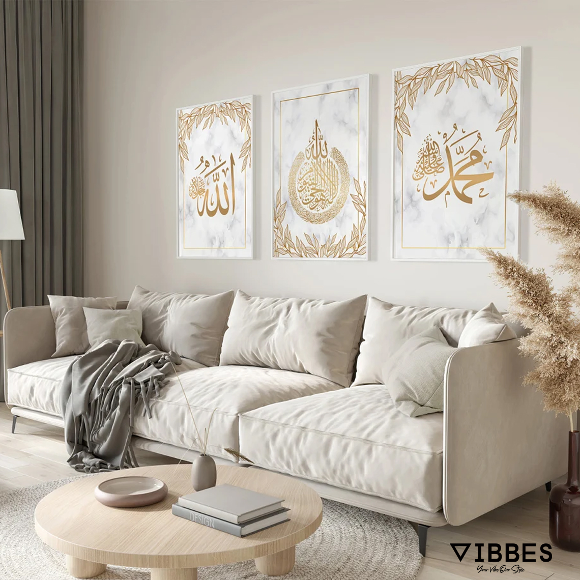 VIBBES wall art collections are crafted to combine modern aesthetics with meaningful Islamic decor.• Set of 3 Islamic wall art frames