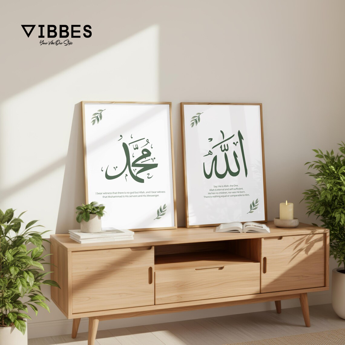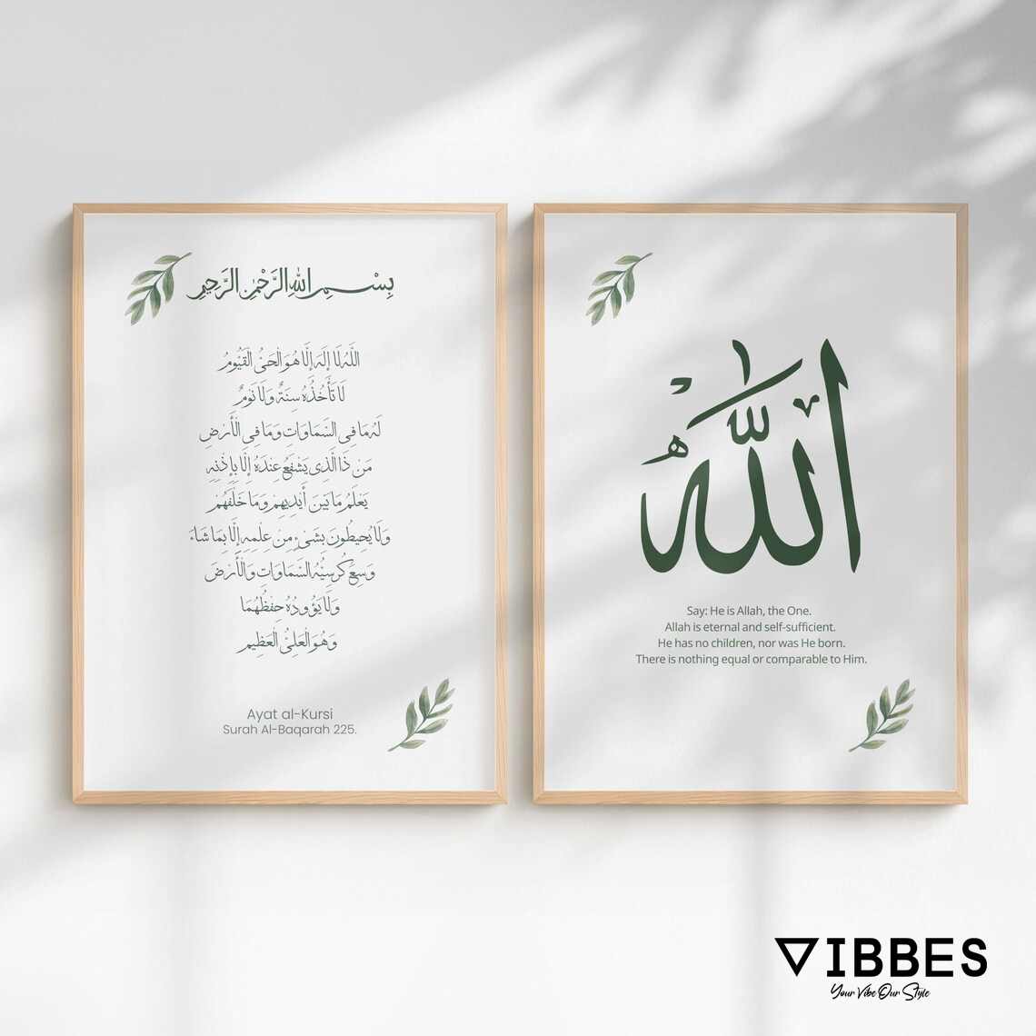 VIBBES wall art is designed to bring spirituality, elegance, and modern aesthetics together in your home.• Set of 3 Islamic calligraphy wall art frames