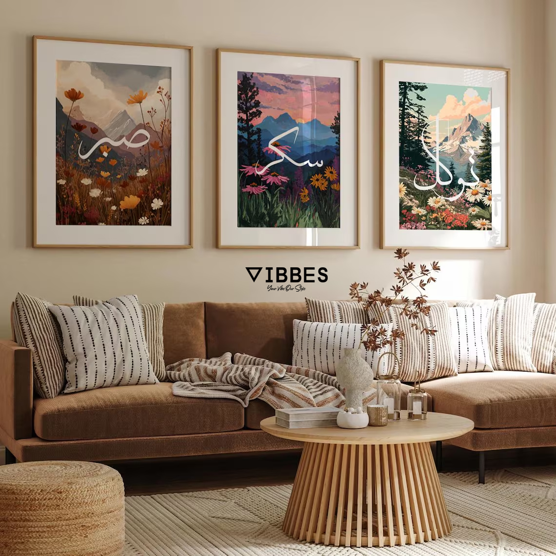 This Islamic landscape wall art set is a perfect gift for Ramadan, Eid, housewarming, weddings and special occasions. Elevate your home decor with meaningful Islamic art from VIBBES.