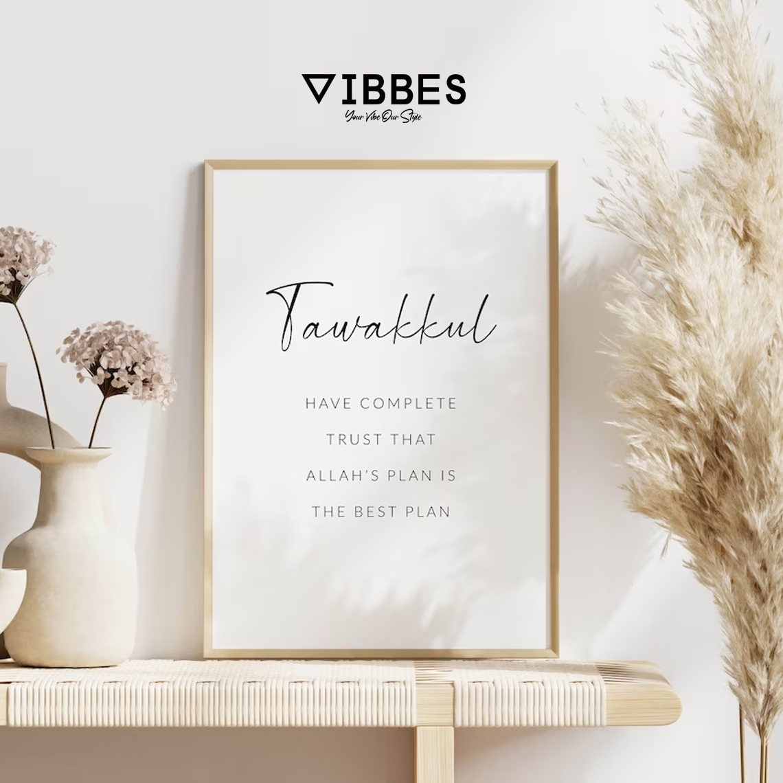 This Islamic quote wall art set is ideal for living rooms, bedrooms, kitchens, prayer rooms, offices and gifting occasions like Ramadan, Eid, housewarming and weddings. Add meaningful and stylish Islamic decor to your home with VIBBES.• Minimal modern Islamic quote wall art