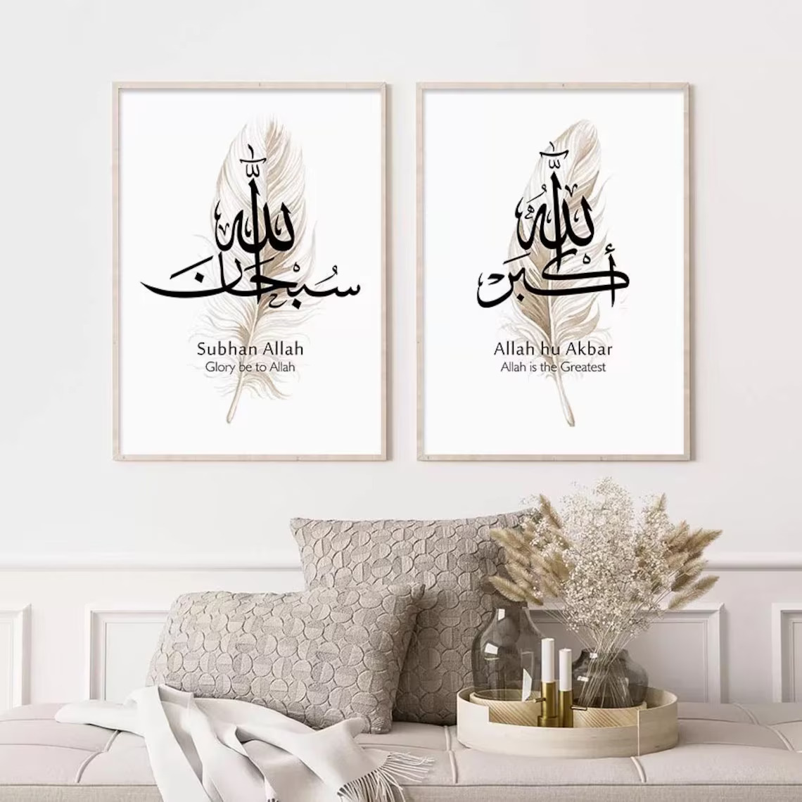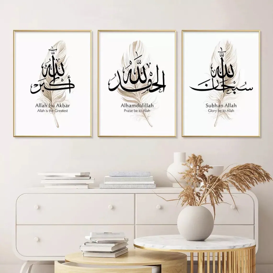 • islamic calligraphy wall art, allahu akbar wall art, alhamdulillah wall decor, subhanallah wall art, minimal islamic wall art, feather islamic wall decor, arabic calligraphy decor, muslim wall art set, modern islamic home decor, vibbes wall art
