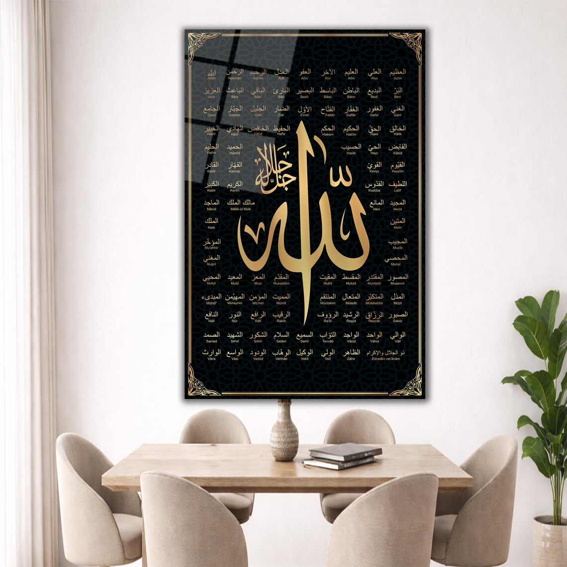 The Ultimate Expression of Divine Luxury Command attention and inspire reverence with our Al-Asma-ul-Husna Prestige Edition. This masterpiece features a striking contrast of metallic gold calligraphy set against a soul-deep midnight black background. It is designed for those who want their home decor to reflect the majesty and grandeur of the 99 Names of Allah (SWT), blending timeless spiritual heritage with an elite, modern aesthetic.