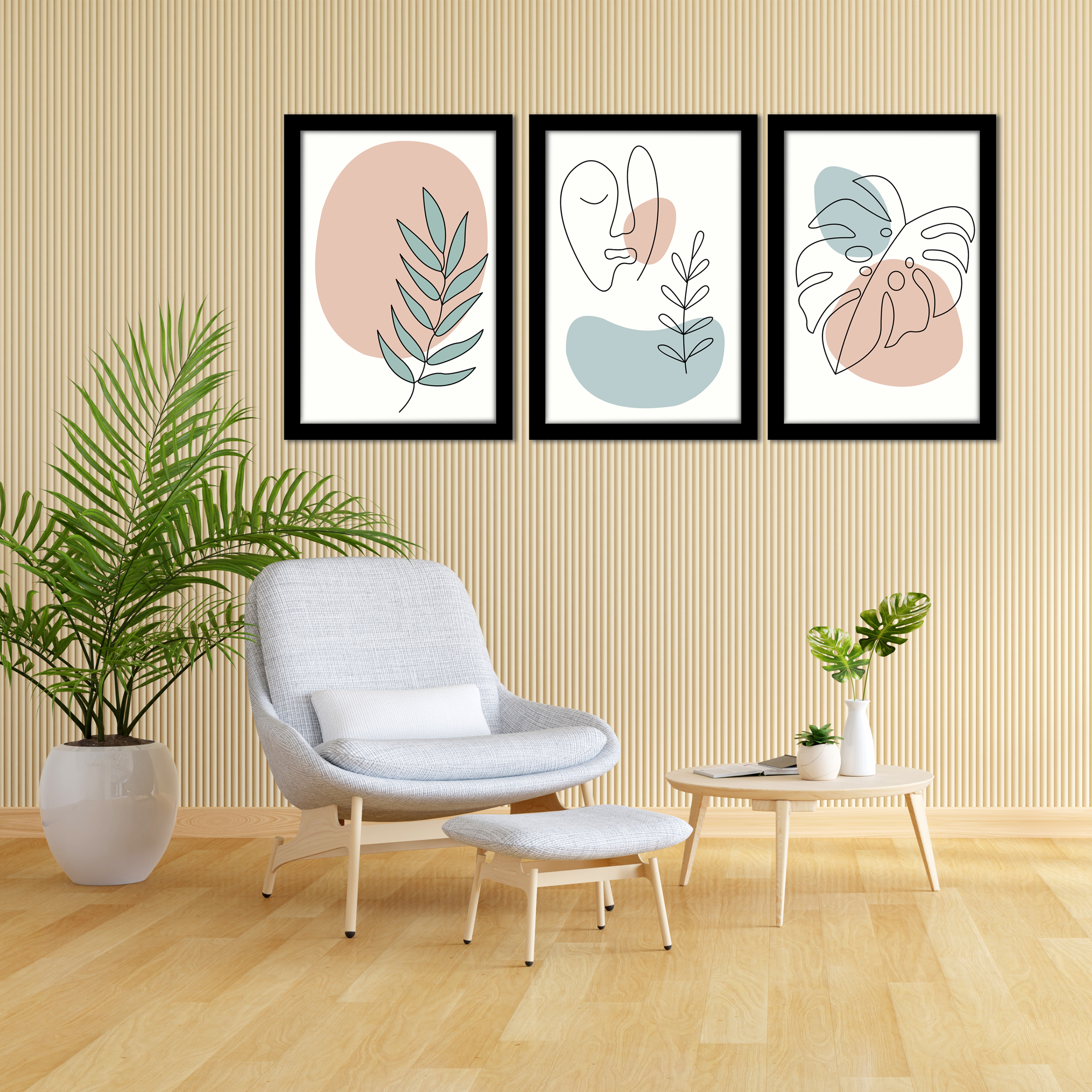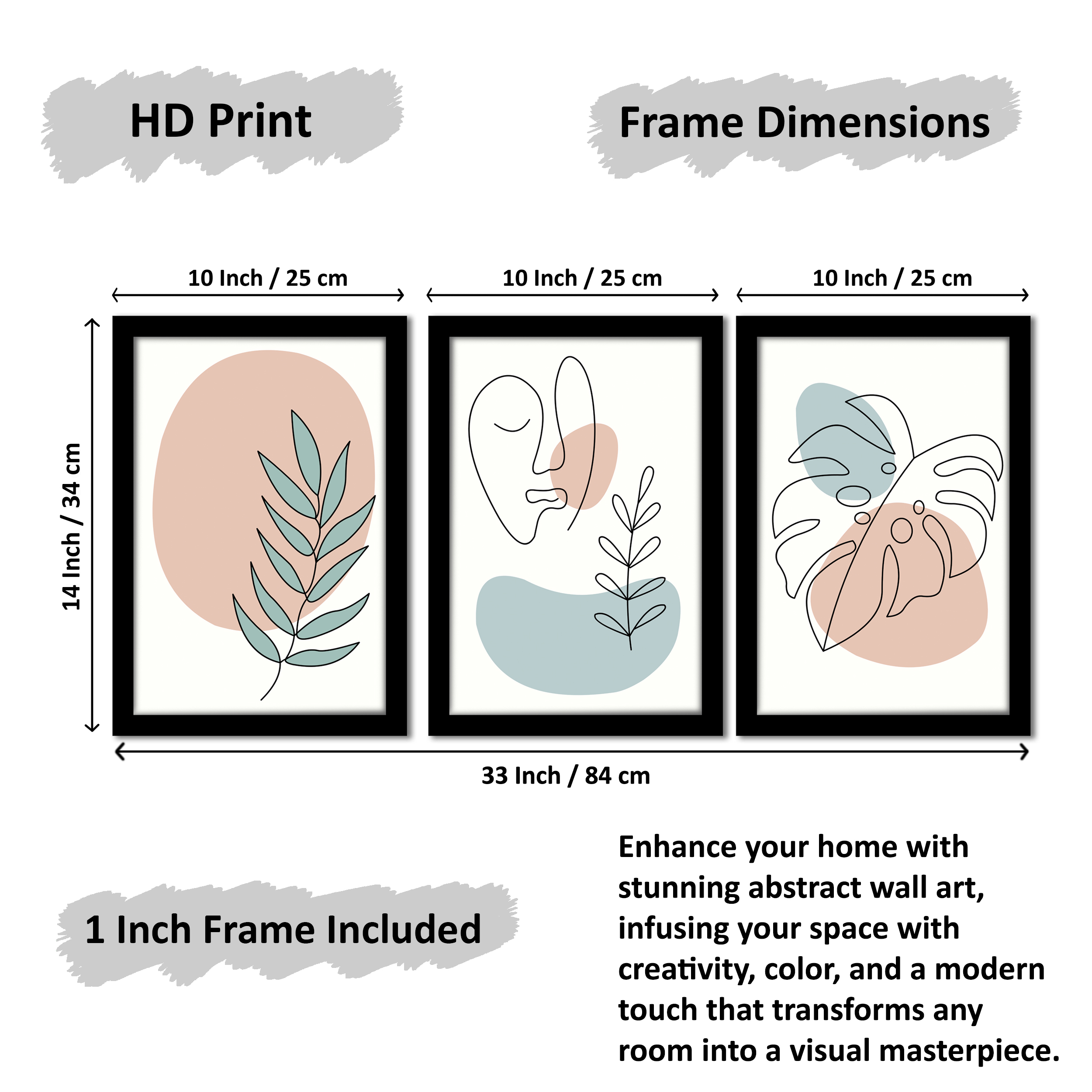 • modern abstract wall art set of 3, minimal line art wall painting, botanical leaf wall art framed, modern face line art wall decor, black frame abstract wall art, fibre glass wall painting, aesthetic wall art for living room, modern home wall decor india, vibbes wall art