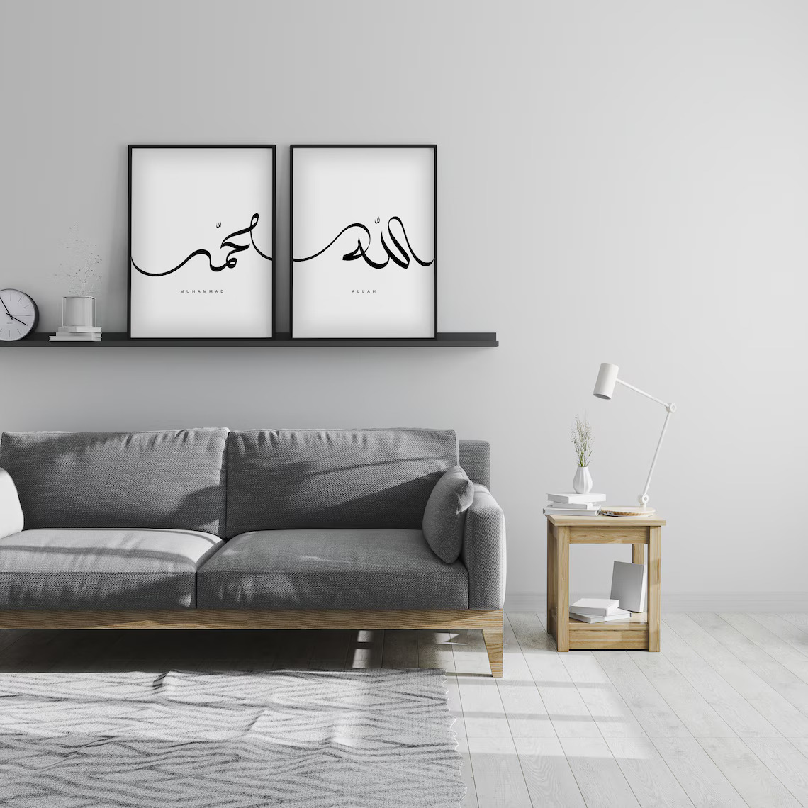 Spiritual Anchor for the Modern Home The names of Allah and Muhammad (PBUH) are the heartbeat of a believer's life. Displaying them in your home is a powerful way to invite Barakah (blessing) and maintain a constant state of Dhikr (remembrance). This set serves as a visual testament to your faith, providing a serene focal point that reminds you and your family of the Divine Presence and the guidance of the Prophet every time you pass by.
