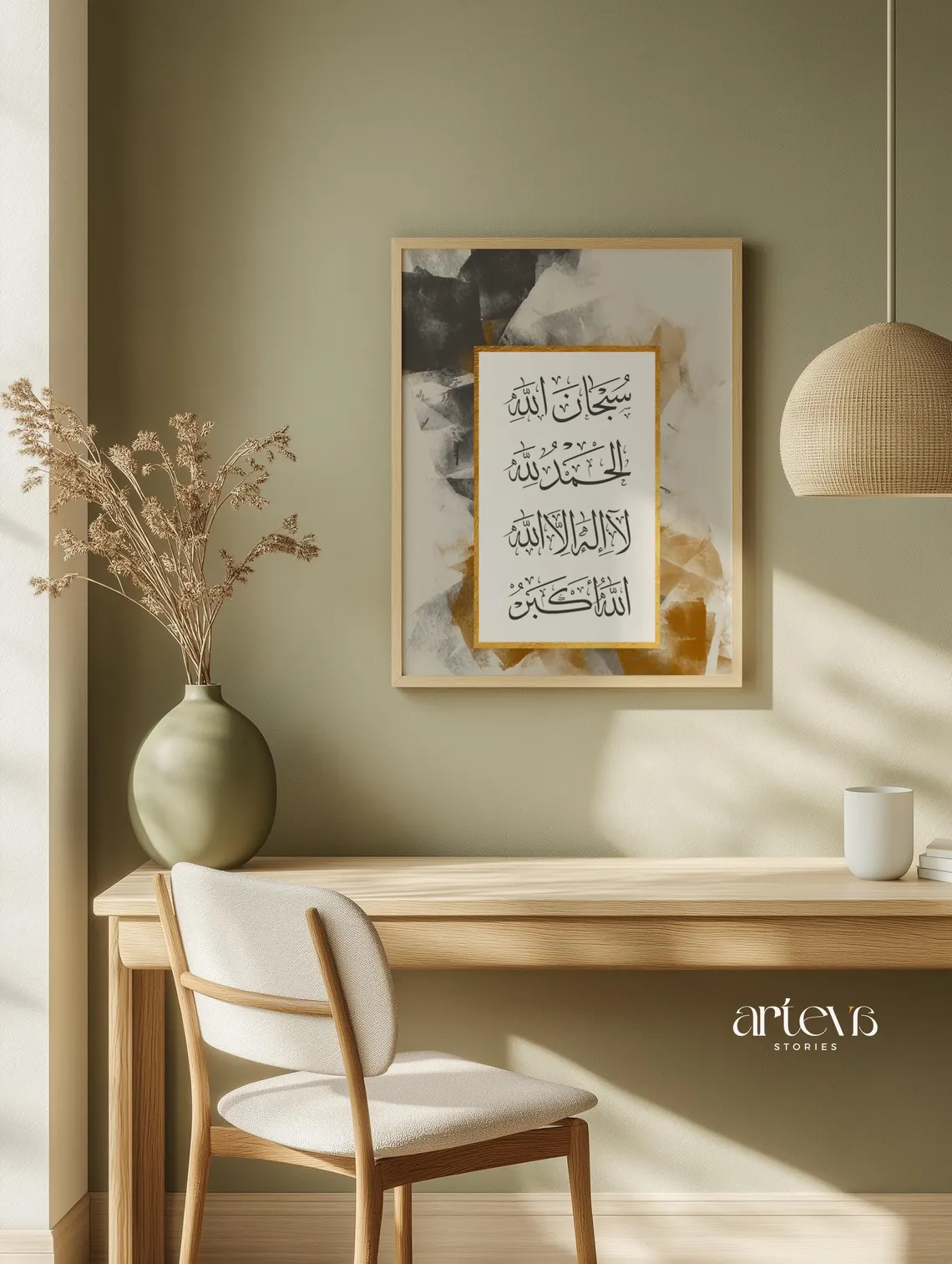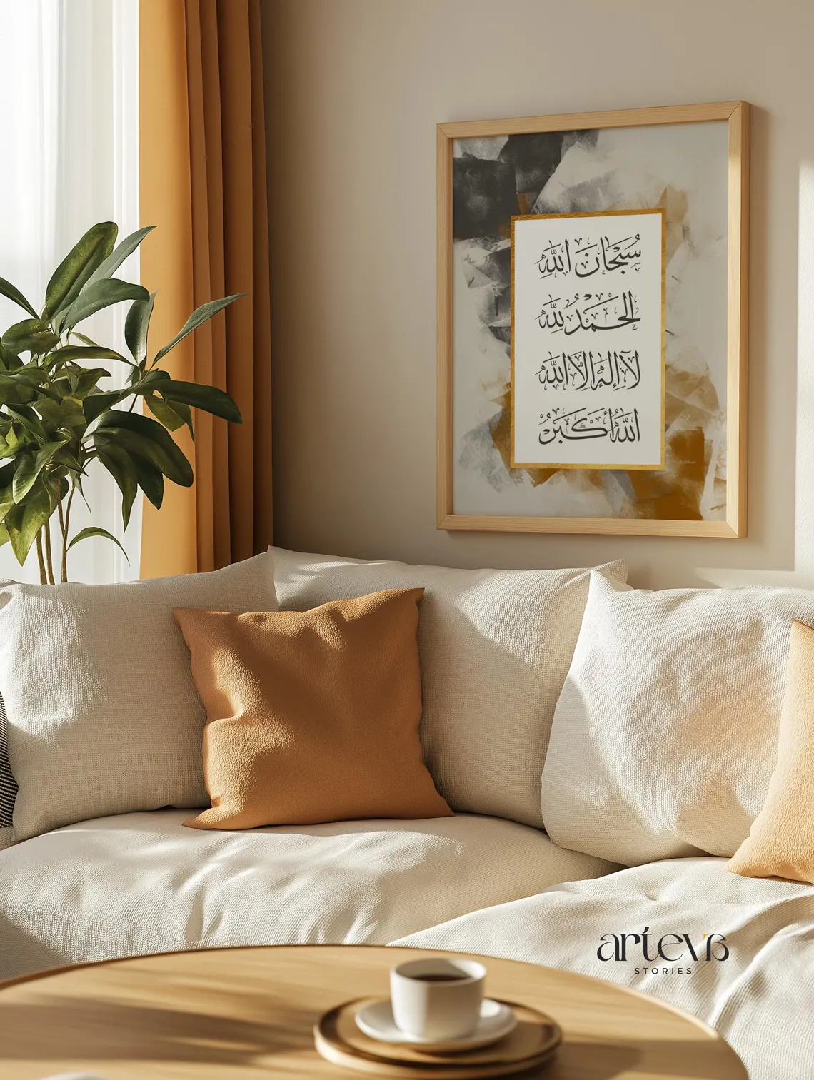 Define Your Atmosphere Your home is your sanctuary. By choosing the Abstract Gold & Ochre Dhikr Calligraphy Art, you are making a statement about your faith and your appreciation for high-end design. Let this be the piece that turns your wall into a window of divine reflection.