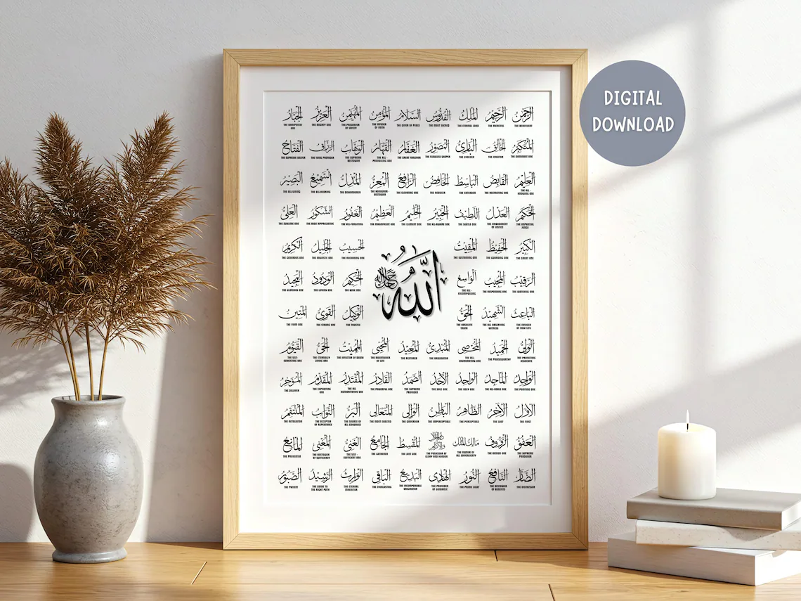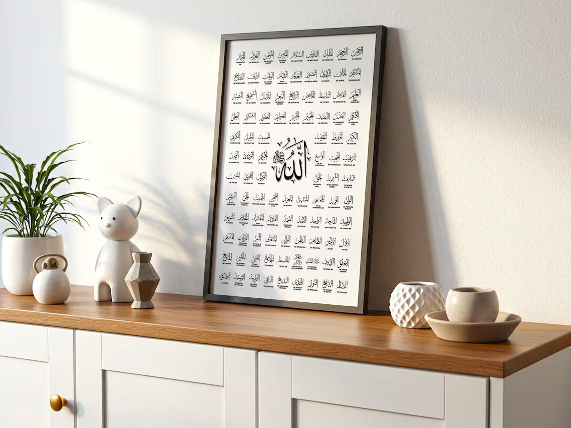 Bring home the 99 Names of Allah Divine Ornate Frame today and let your walls speak the language of devotion and beauty.