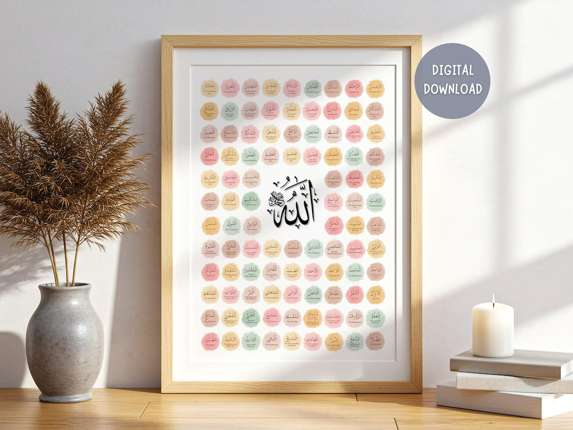 Bring home the 99 Names of Allah Divine Ornate Frame today and let your walls speak the language of devotion and beauty.