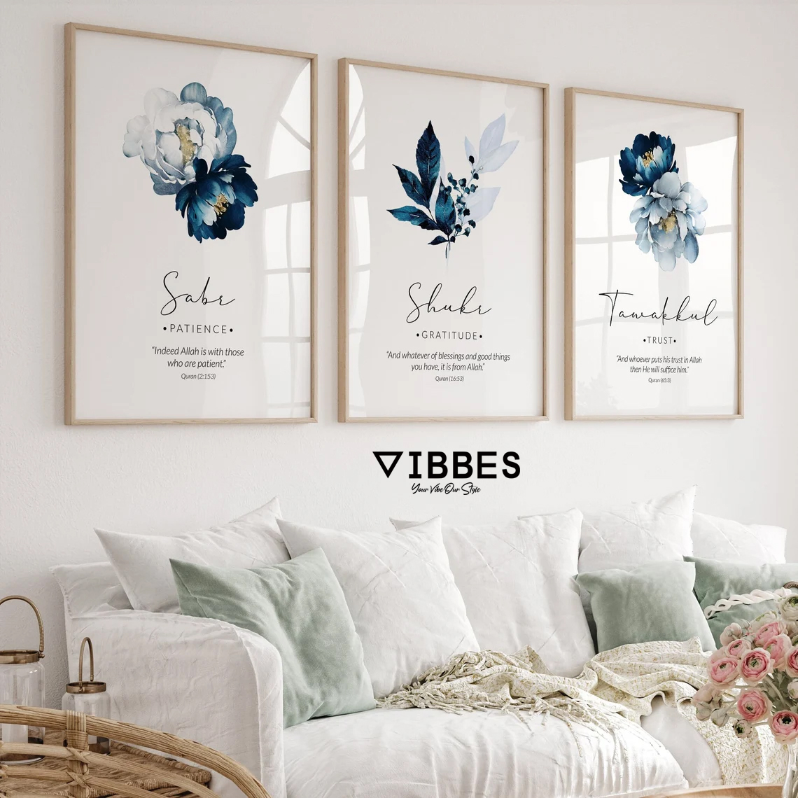 • sabr shukr tawakkul wall art, islamic floral wall art, islamic quotes wall decor, modern muslim wall art, framed islamic wall art set, islamic bedroom wall decor, islamic living room wall art, floral wall art set of 3, islamic motivational wall art, muslim home decoration india