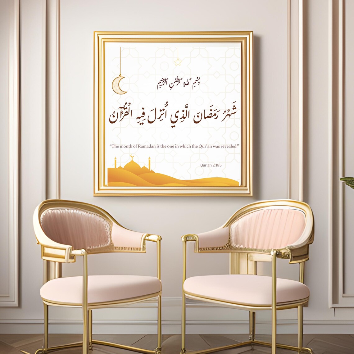 Commemorate the Month of Revelation Bring the sacred essence of the holy month into your home with our "Golden Sands" Ramadan Art. This elegant piece features the foundational verse from Surah Al-Baqarah (2:185): “The month of Ramadan is the one in which the Qur’an was revealed”. As a daily visual dhikr, it serves as a powerful reminder of the primary purpose of this blessed time—the celebration of the Divine guidance sent down to mankind.
