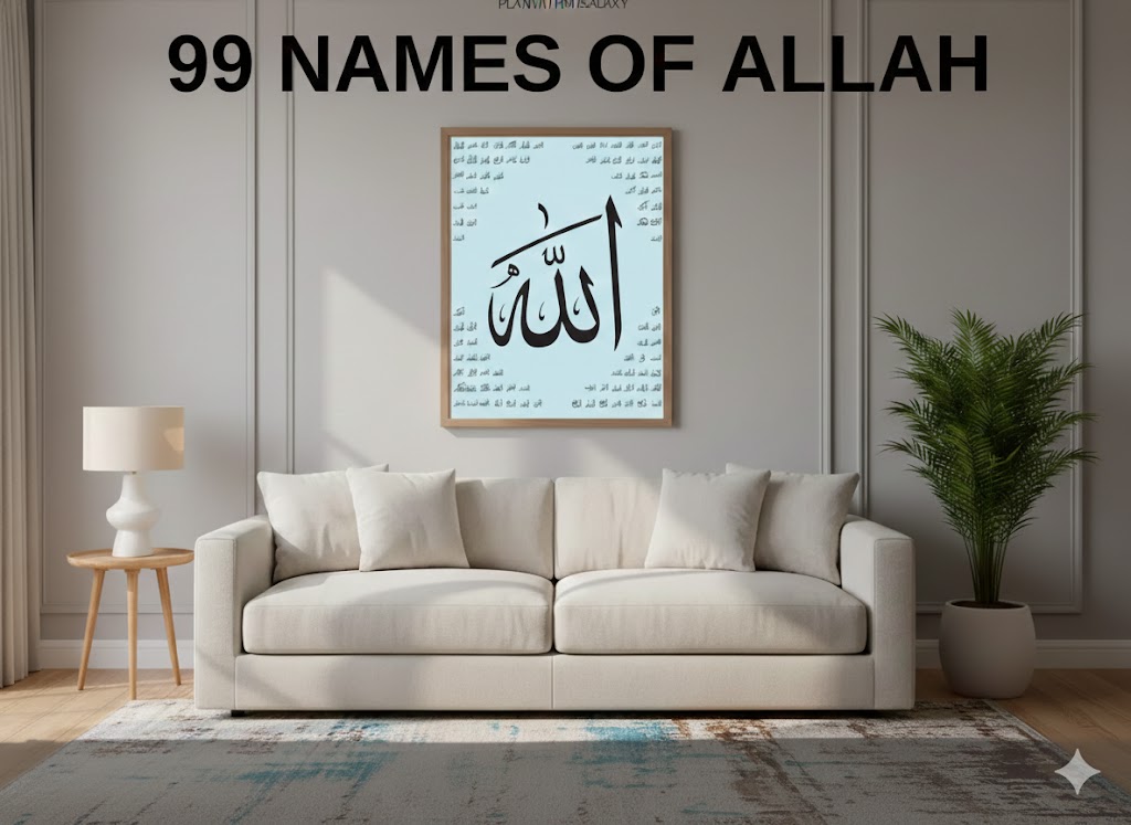 A Statement of Divine Presence Bring a powerful focal point of faith into your home with the Majestic Allah Script in Sky Blue. This piece is designed for maximum impact, focusing solely on the majestic "Allah" script rather than a full grid of names. Its bold, black calligraphy stands in beautiful contrast against a tranquil light blue background, creating a piece that is both visually commanding and spiritually soothing.