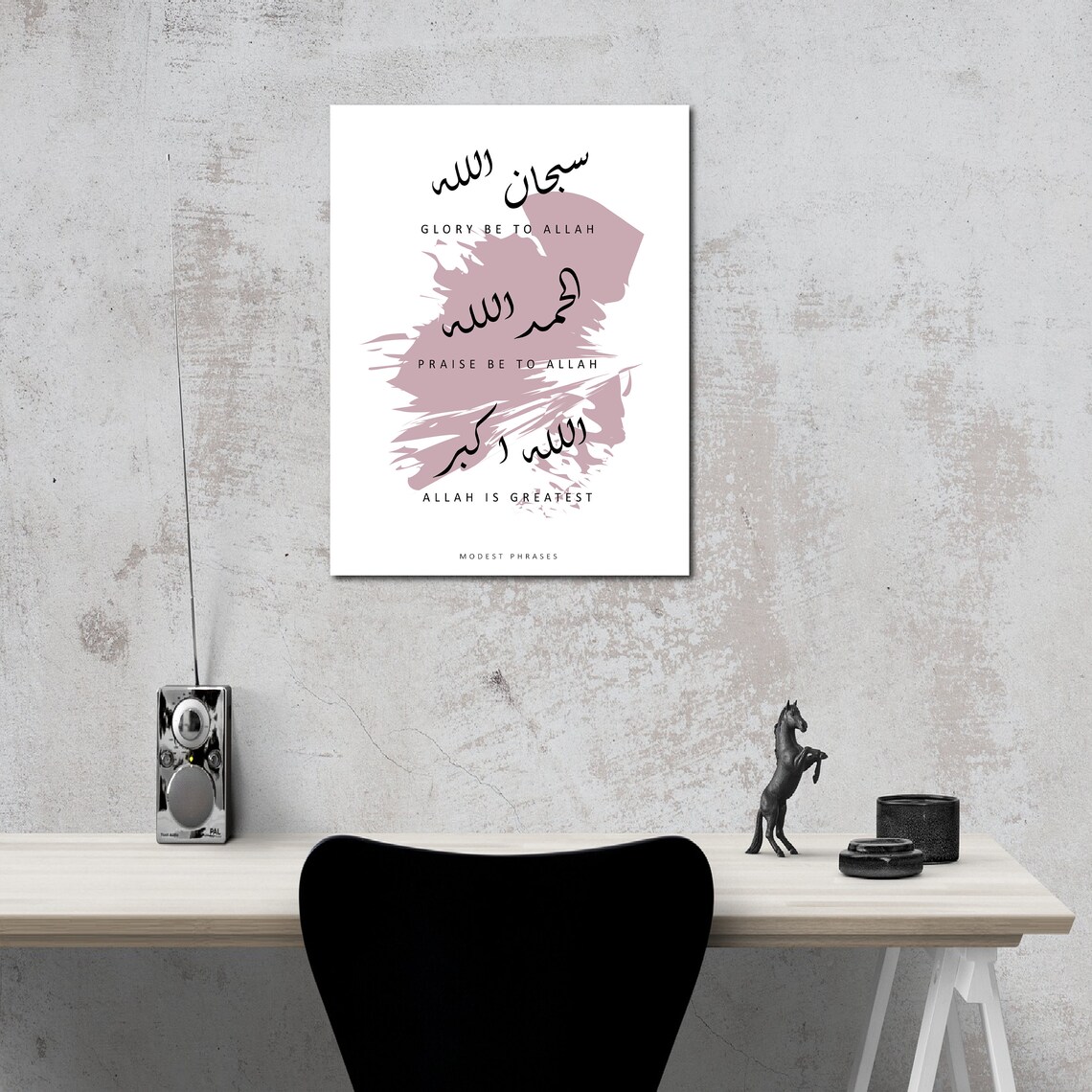 Islamic Wall Decor, Arabic Calligraphy, Pink Brushstroke Art, SubhanAllah, Alhamdulillah, Allahu Akbar, Minimalist Art, Muslim Gifts, Canvas Wall Art, Home Office Decor, Spiritual Art, Modern Islamic Design