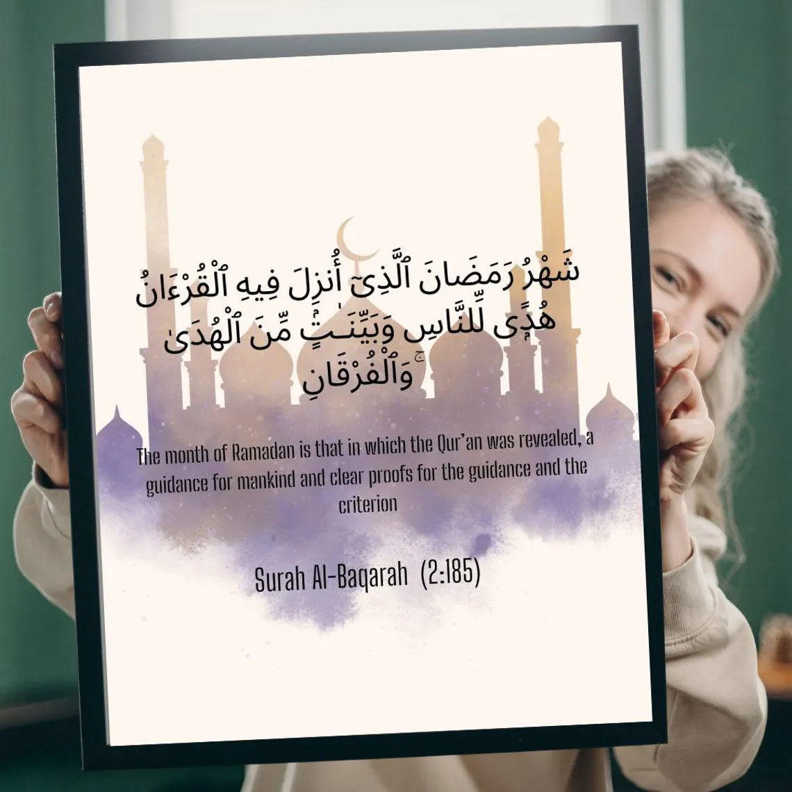 The Perfect Seasonal Gift Whether you are looking to refresh your own home for the upcoming month or searching for a meaningful Ramadan or Eid gift for friends and family, this print is a timeless choice. It is a gift that doesn't just decorate a room, but enriches it with the "Barakah" (blessing) of the Quranic message. It is a perfect way to celebrate the spirit of the month and share the beauty of Islam with those you love.