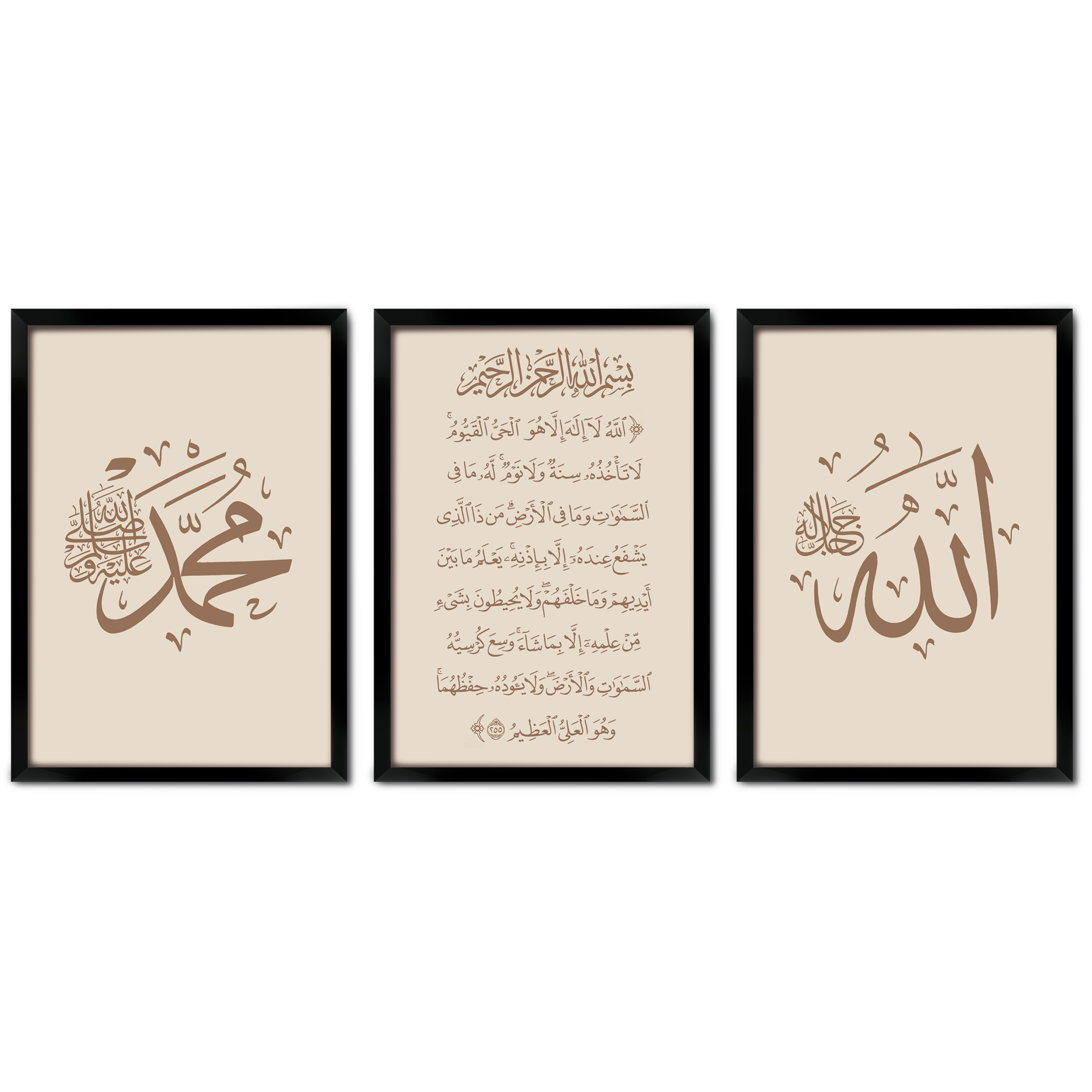 • allah wall art, muhammad wall frame, ayatul kursi wall art, islamic calligraphy decor, muslim wall decor, quranic verses wall art