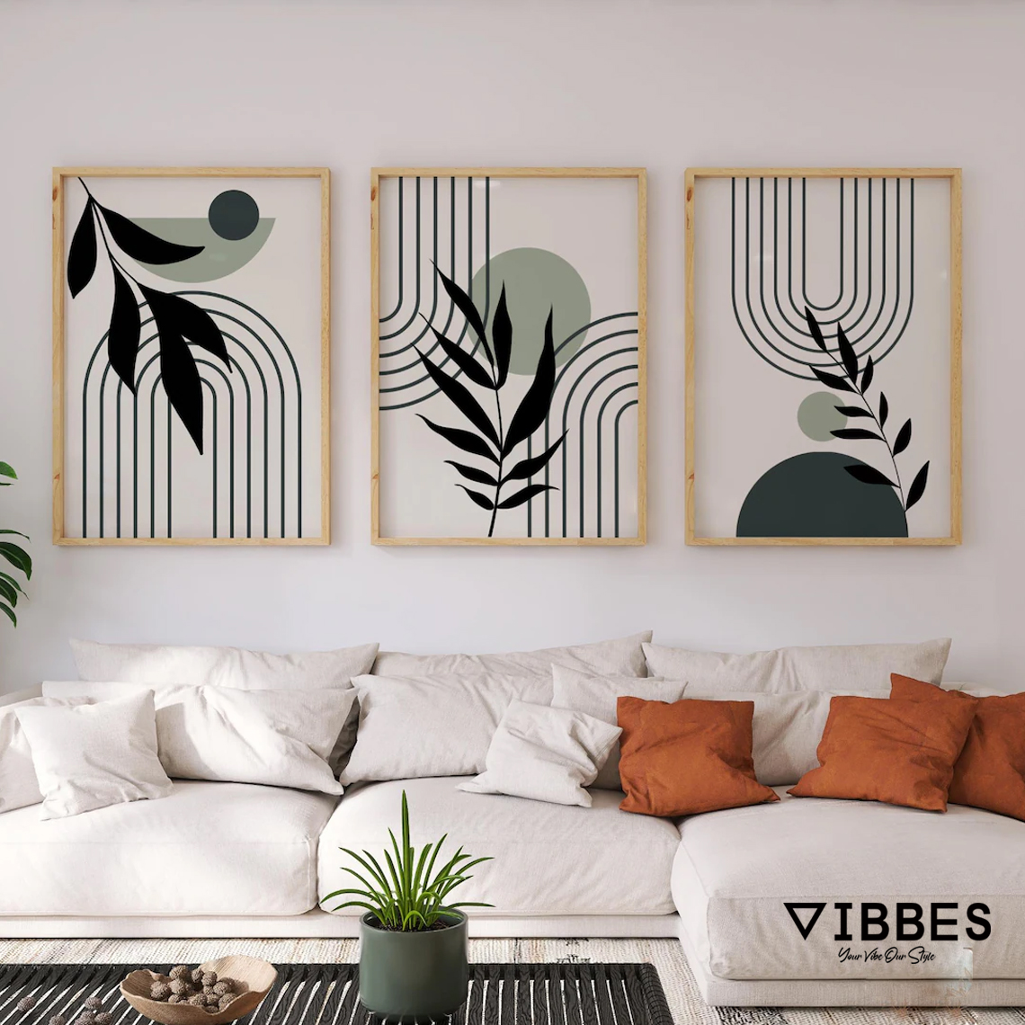 VIBBES premium wall art collections are curated to deliver luxury design, modern aesthetics, and superior quality for contemporary homes and commercial spaces.• Premium modern abstract botanical wall art set of 3