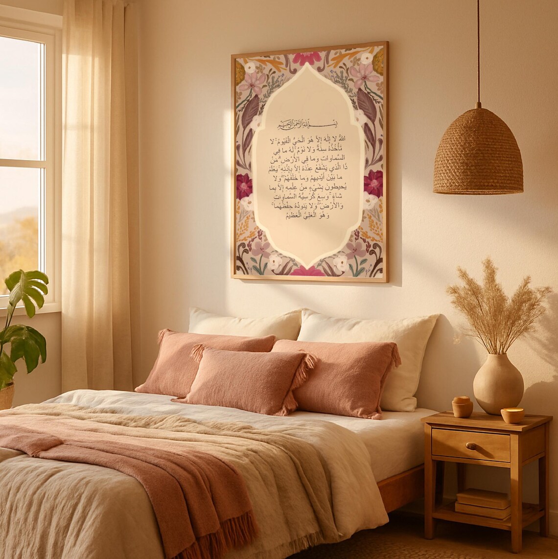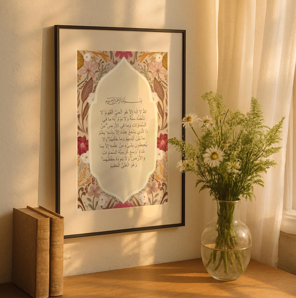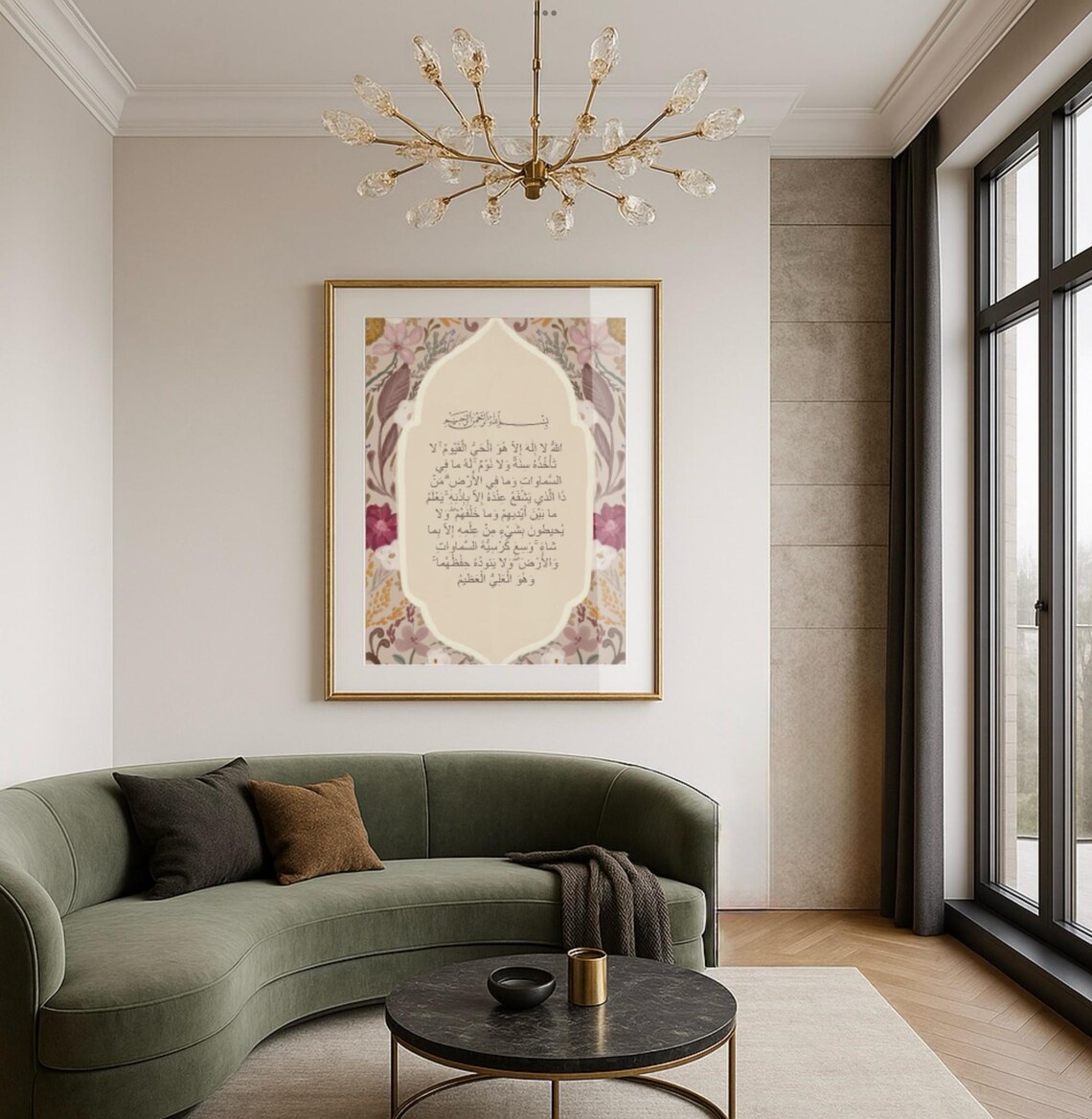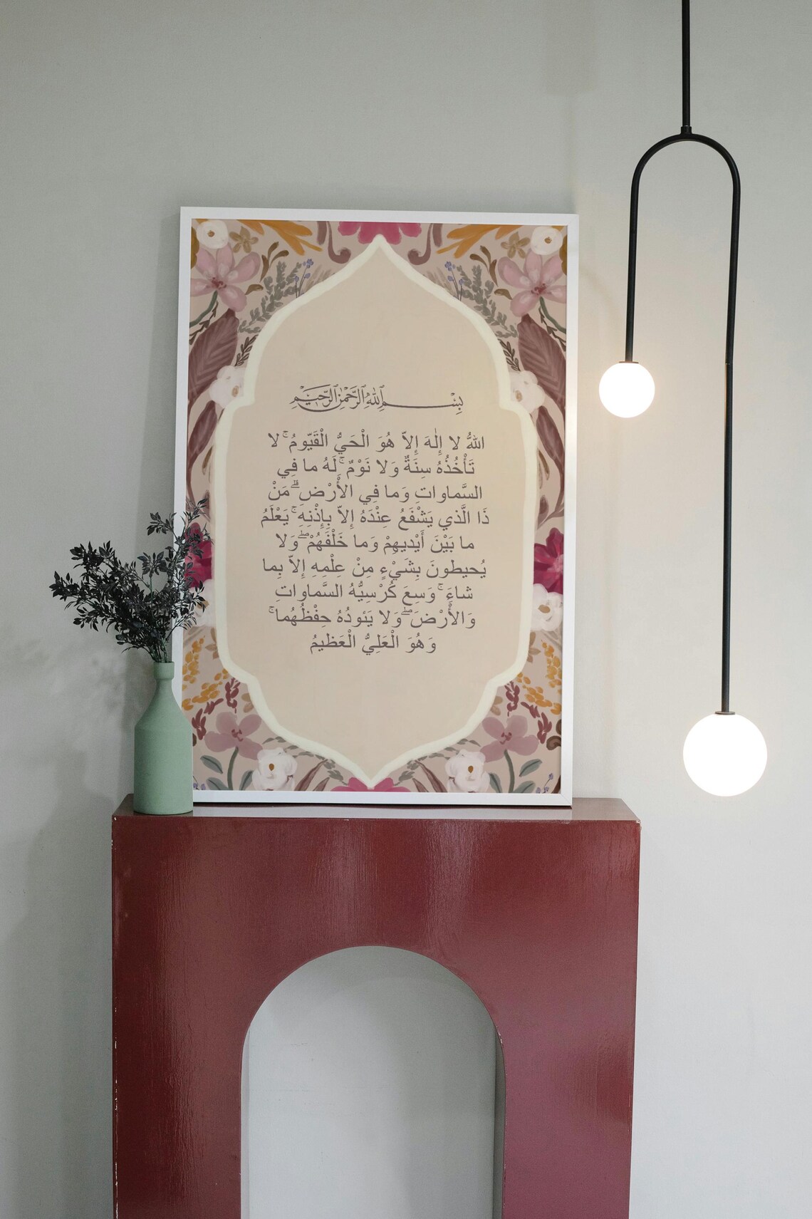 Elevate your surroundings with the Word of Allah. Order your Botanical Arch Ayatul Kursi today and experience the perfect harmony of vintage artistry and divine truth.