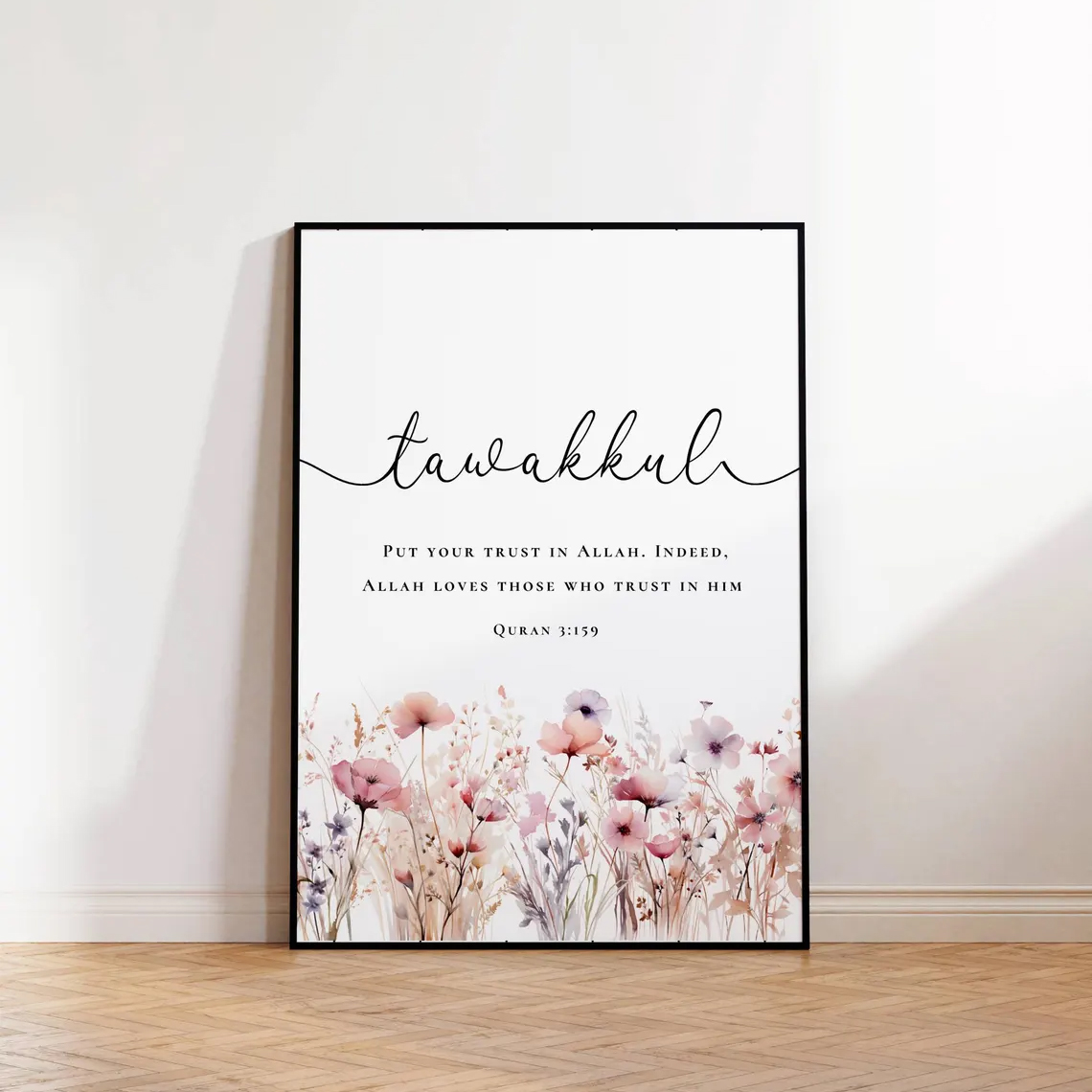 • floral islamic wall art, sabr wall art, shukr wall art, tawakkul wall decor, islamic floral decor, muslim wall art, prayer room decor, arabic calligraphy floral wall art, framed islamic wall art, modern islamic home decor, pastel wall art, islamic typography decor, vibbes wall art, religious wall paintings