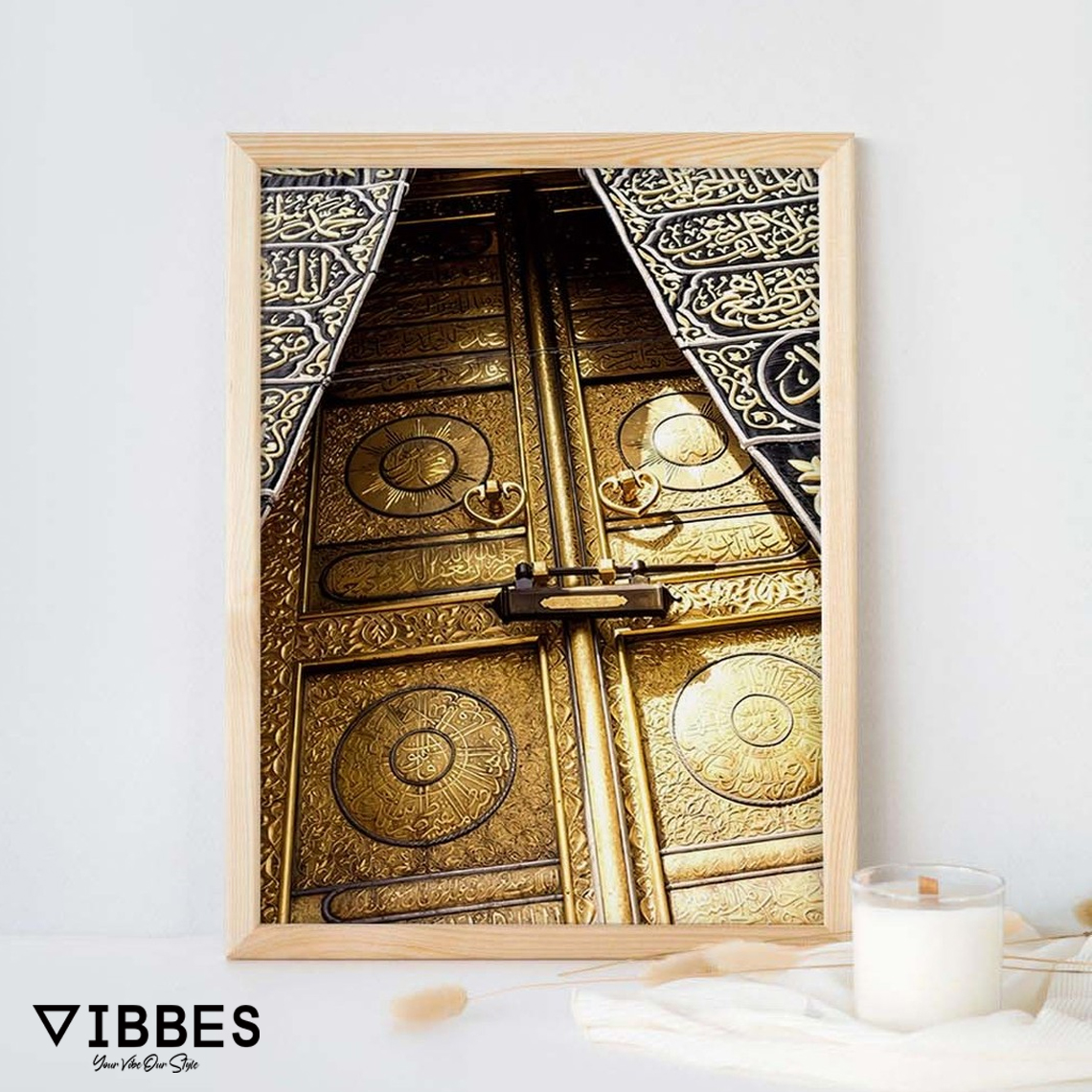This premium Islamic wall art set of 3 features elegant calligraphy of Allah, Muhammad and a detailed Kaaba door design in a luxurious gold marble texture. The artwork is designed to add a spiritual and modern aesthetic to your home decor while maintaining a premium luxury feel.