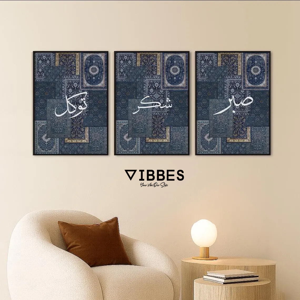 • islamic wall art, arabic calligraphy wall art, tawakkul shukr sabr wall decor, blue islamic wall art, muslim home decor, islamic canvas wall art, framed islamic wall art india, islamic wall painting set of 3, modern islamic wall decor, spiritual wall art, religious wall art islam, islamic bedroom decor, islamic living room decor