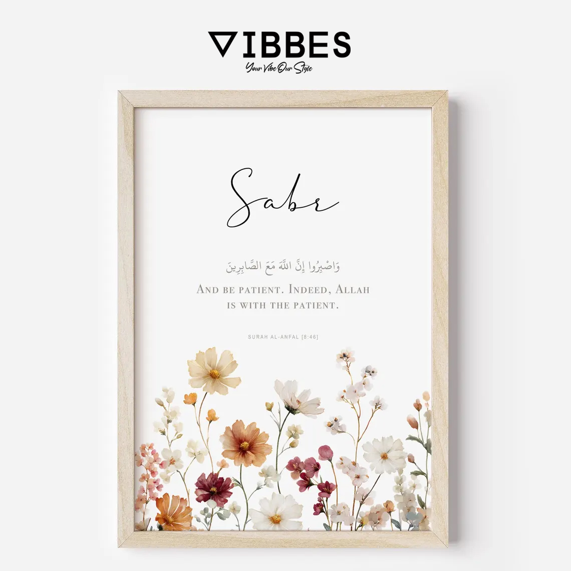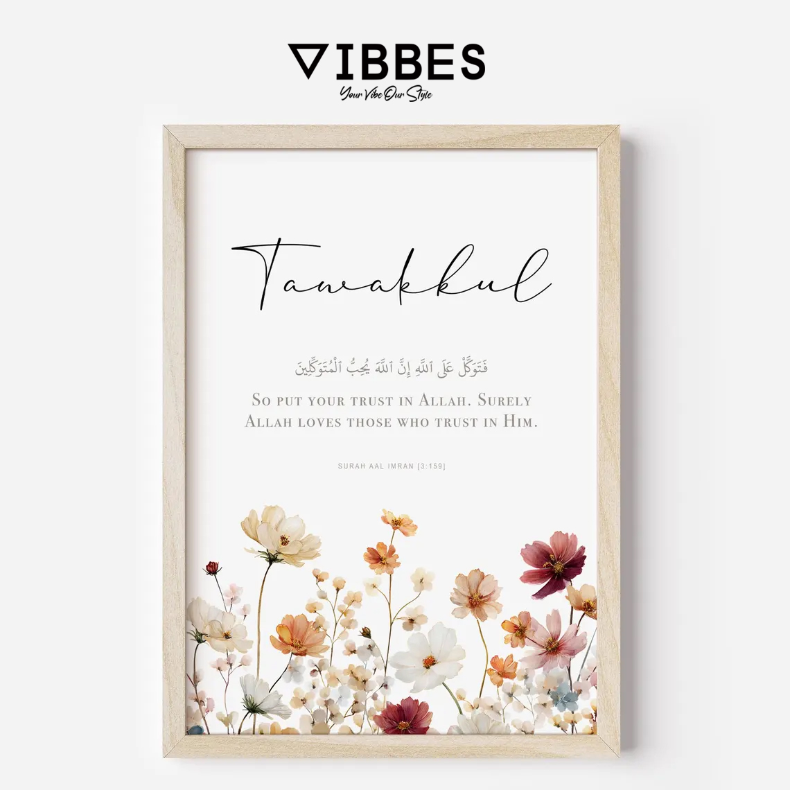 Sabr means patience, Shukr means gratitude and Tawakkul means complete trust in Allah. These frames inspire positivity and faith in daily life and are perfect for Muslim home decor.
