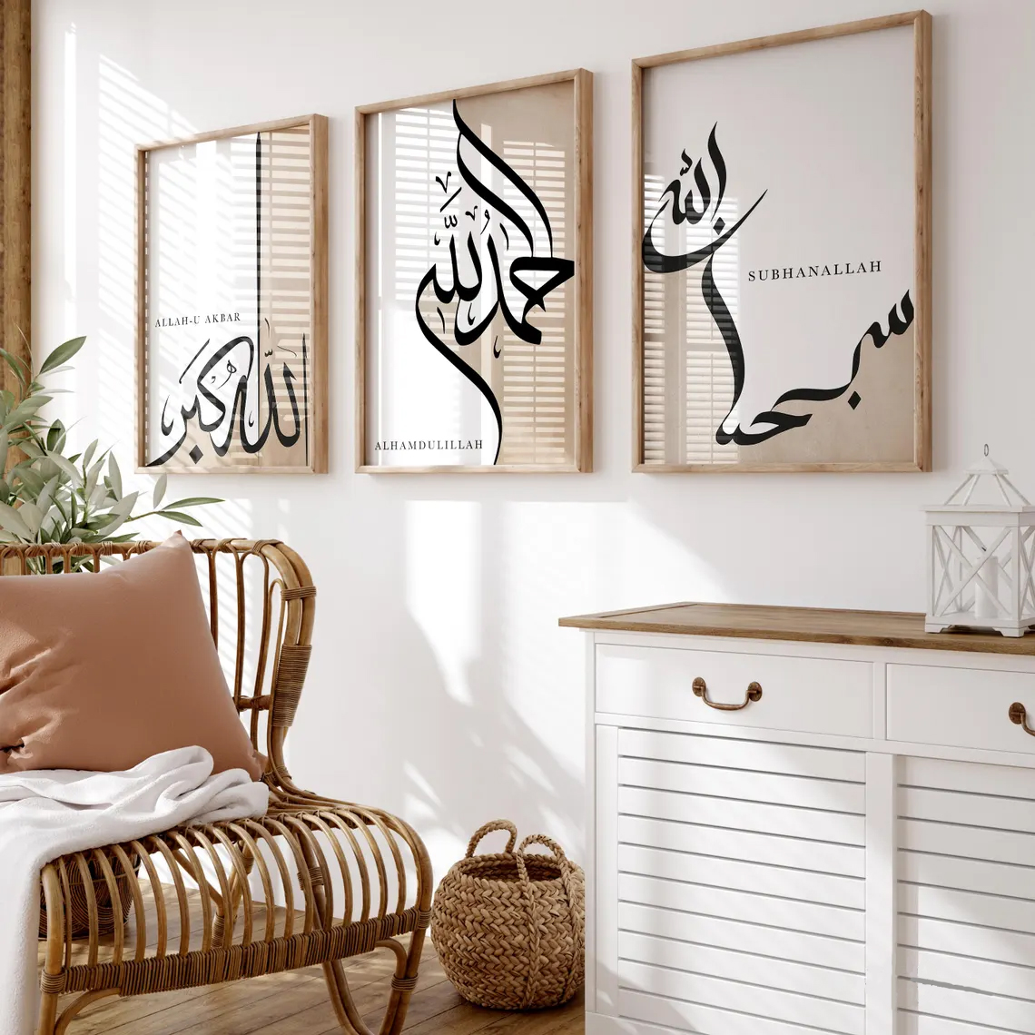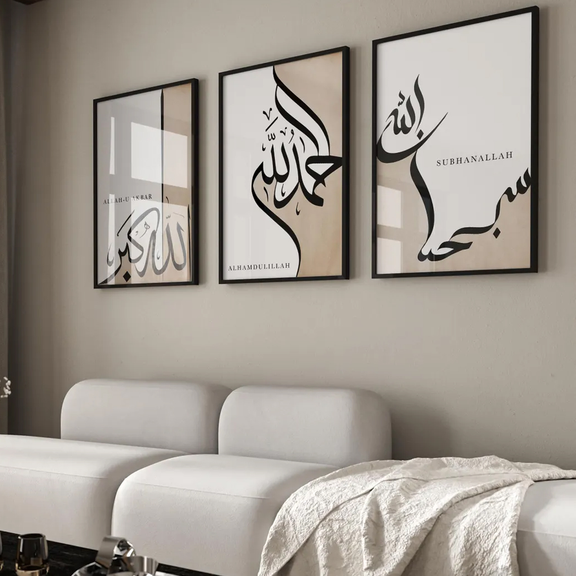 Islamic Calligraphy Allahu Akbar Alhamdulillah Subhanallah Wall Art Set of 3 | Modern Arabic Wall Decor