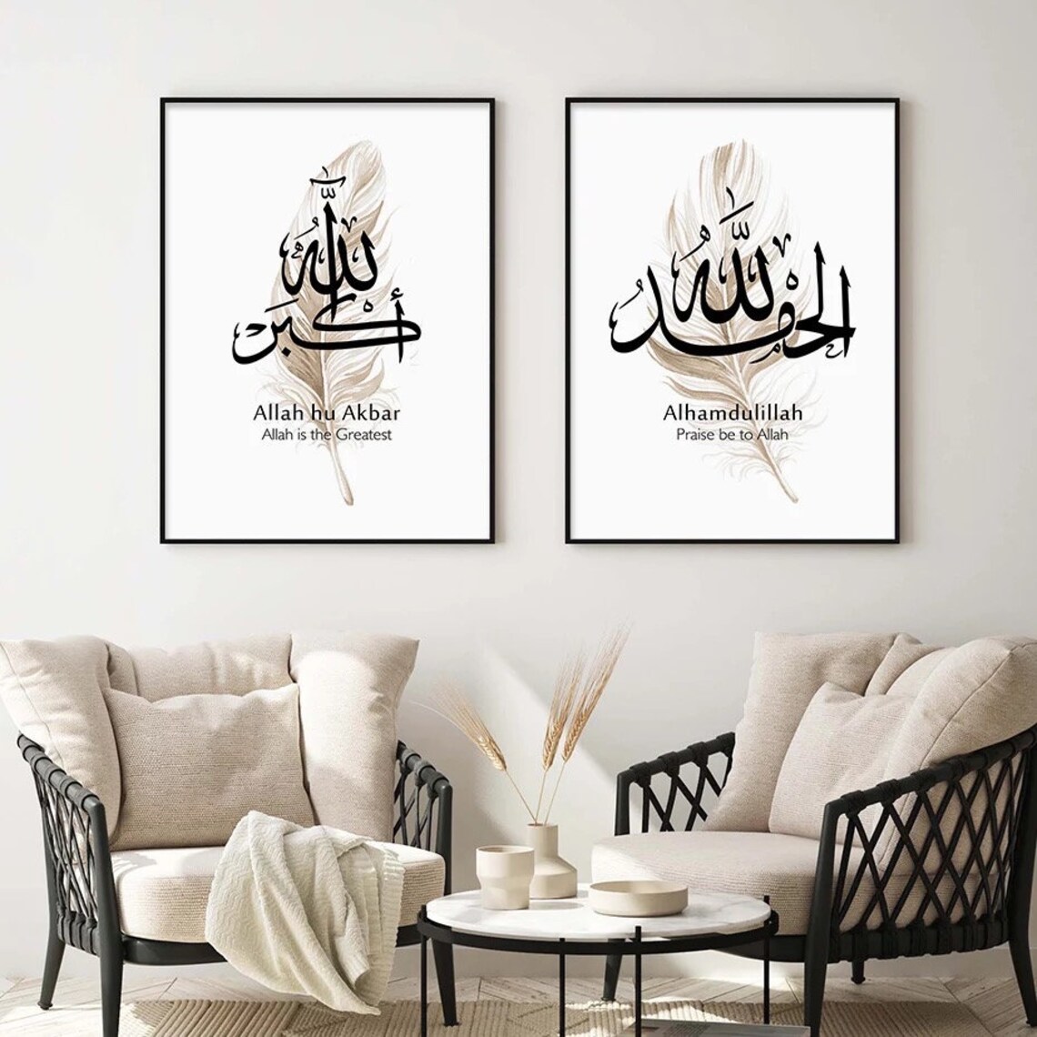 • islamic calligraphy wall art, allahu akbar wall art, alhamdulillah wall decor, subhanallah wall art, minimal islamic wall art, feather islamic wall decor, arabic calligraphy decor, muslim wall art set, modern islamic home decor, vibbes wall art
