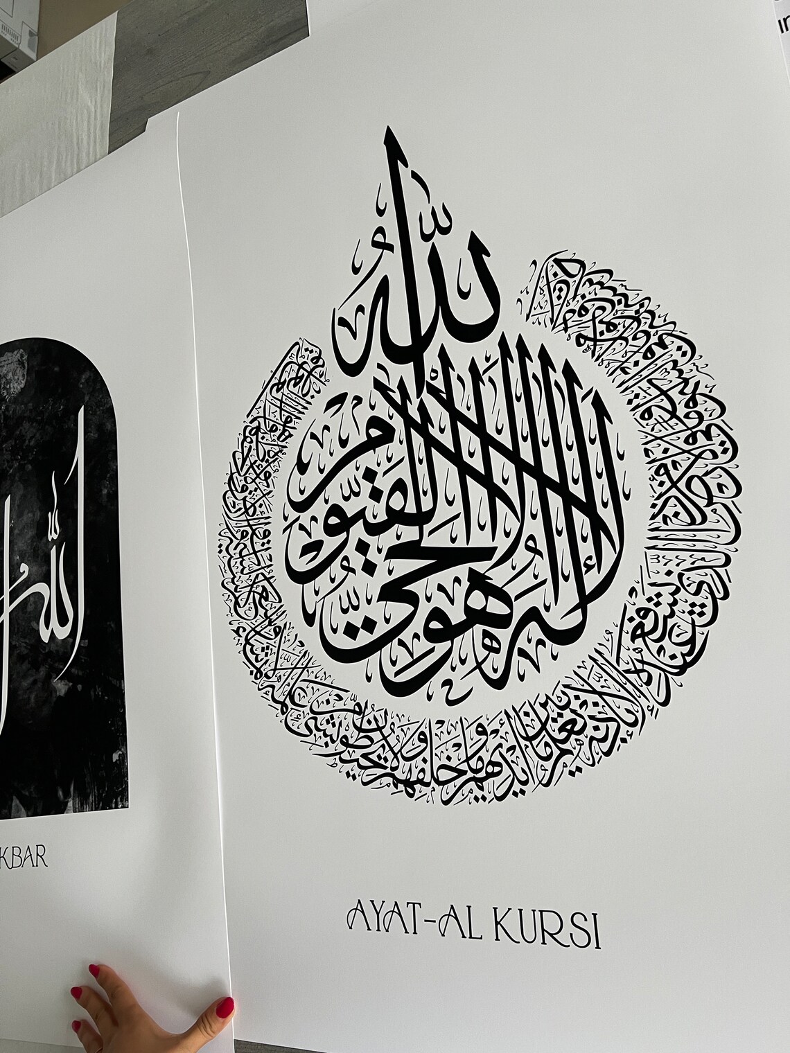 Ayatul Kursi (Center): Often referred to as the "Throne Verse," this central piece contains the powerful 255th verse of Surah Al-Baqarah. Its intricate, circular design draws the eye, symbolizing the infinite protection and sovereignty of the Creator.