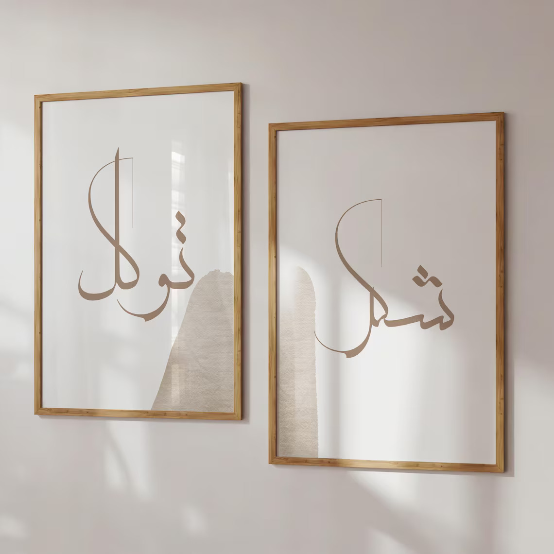 Step into a world of spiritual elegance with our Gateway of Faith Triptych. This unique three-piece collection combines the power of sacred words with the beauty of Islamic architecture. Featuring Shukr (Gratitude) and Tawakkul (Trust) on either side of a breathtaking Islamic Arched Door, this set symbolizes the journey of a believer: entering through the doors of mercy by practicing thankfulness and total reliance on the Divine.